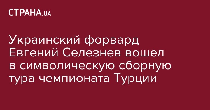 Украинский нападающий Евгений Селезнев попал в символическую сборную 23-го тура турецкой Суперлиги по версии WhoScored.