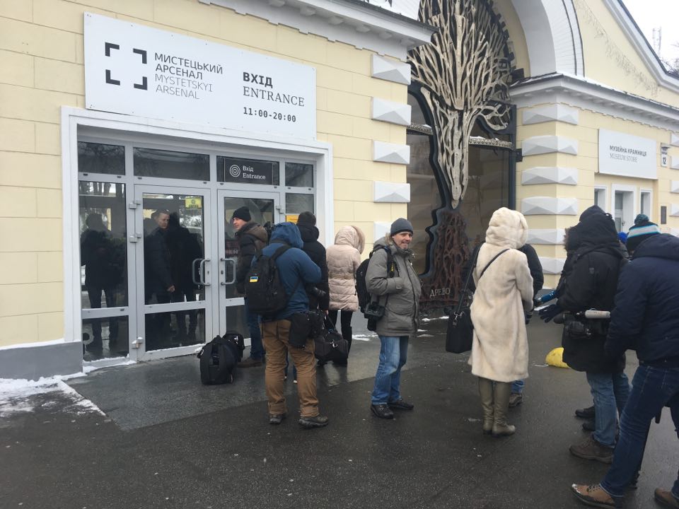 Как сообщает корреспондент "Страны", под зданием "Мыстецького арсенала" задержали двух активисток Femen, которые также присутствовали среди журналистов в толпе.