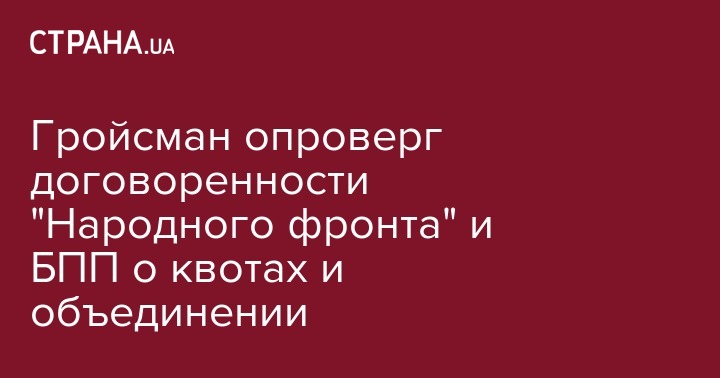 Премьер-министр Владимир Гройсман опроверг "Стране", что "Народный фронт" и БПП договорились о квотах в будущем совместном политическом проекте. А информацию в СМИ, которая появляется на эту тему, он назвал "вбросом".