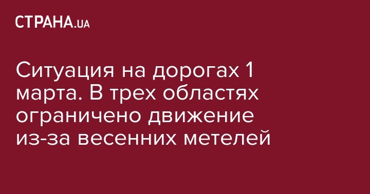 По состоянию на 07:00 1 марта, на период сложных погодных условий, временно запрещен въезд большегрузного транспорта в города, Днепр, Запорожье, Кропивницкий, Николаев, Одесса, Херсон. Ограничено движение крупногабаритных транспортных средств на всех дорогах при въезде в Киев.