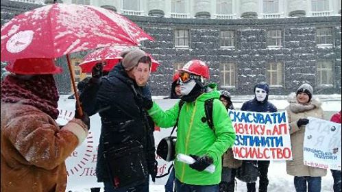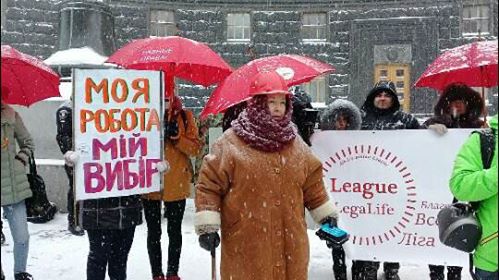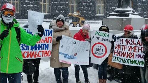В Киеве секс-работники в лютый снегопад вышли на акцию "Сталеві яйця". Фото