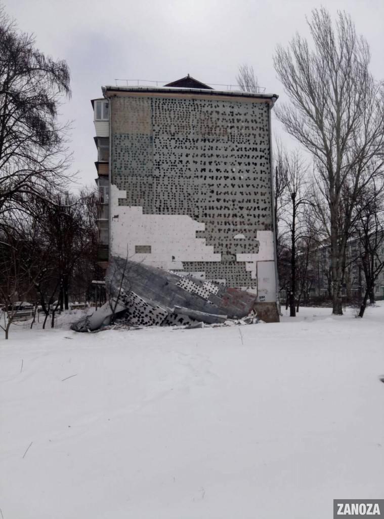 В Запорожье ураганный ветер полностью сорвал с пятиэтажки утеплитель. Фото