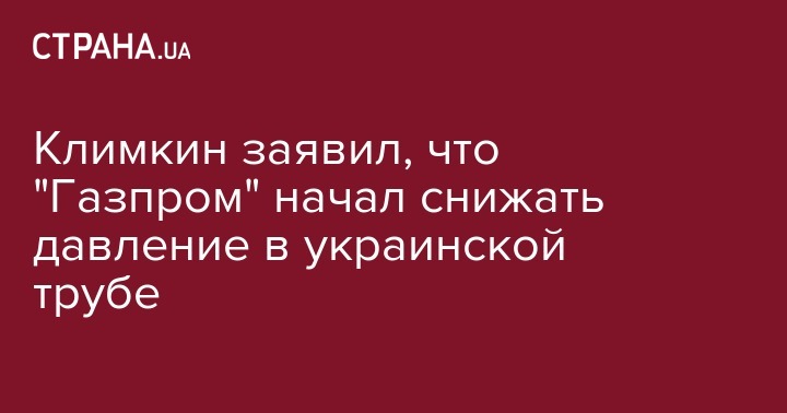 Российская компания "Газпром" снизил давление подачи газа на входе в украинскую газотранспортную систему (ГТС) почти на 20% ниже контрактного. Об этом сообщил в Twitter министр иностранных дел Павел Климкин.