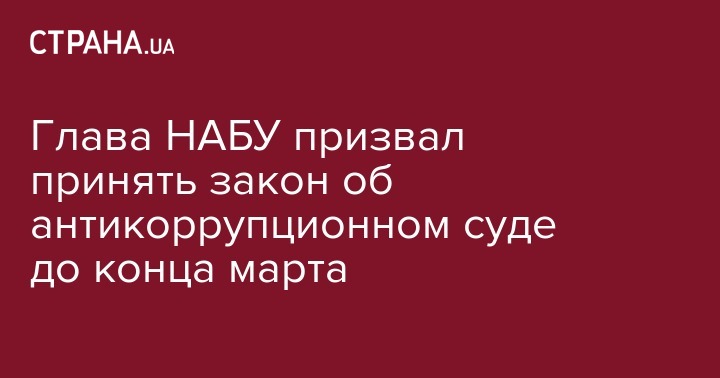 Директор Национального антикоррупционного бюро Артем Сытник заявляет о необходимости до конца марта принять и подписать закон о Высшем антикоррупционном суде.