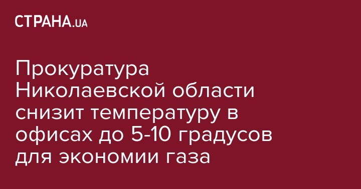 "Прокуратура Николаевской области поддержала обращение "Нафтогаза" и во всех помещениях органов прокуратуры снижена температура от 5 до 10 градусов, что позволит также сэкономить бюджетные средства.