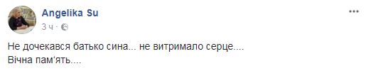 "Не дождался отец сына... не выдержало сердце.... Вечная память....", - говорится в ее сообщении.