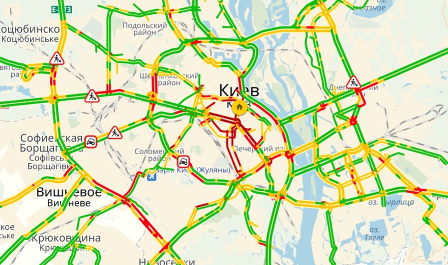 Кроме того, почти невозможно проехать на бульварах Леси Украинский и Дружбы Народов, проспектах Победы, Николая Бажана, Романа Шухевича и на Подоле.