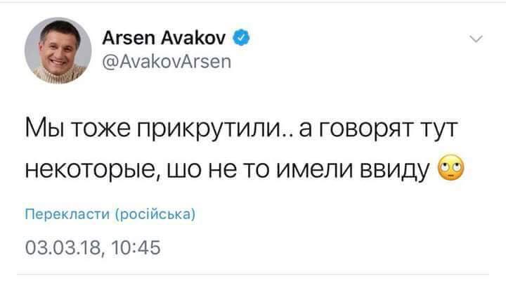 12:39 В сети уже начали обсуждать циничный пост Арсена Авакова о разгоне МихоМайдана. Он заявил, что "мы тоже прикрутили". Напомним, при этом пострадало множество людей, включая полицейских. Были кровавые столкновения. Что не помешало министру поставить смайлик.