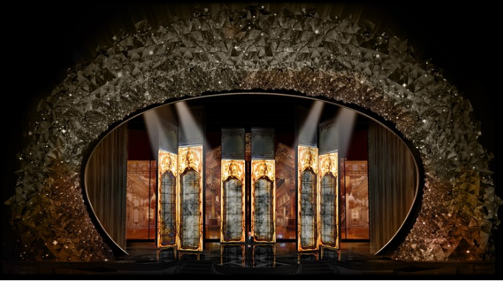 Дизайнер решил создать арку с использованием 45 миллионов кристаллов Swarovski перед кулисой, чтобы создать потрясающий фон. Кроме того, Маклейн добавил зеркала, хрустальные люстры и другие детали.