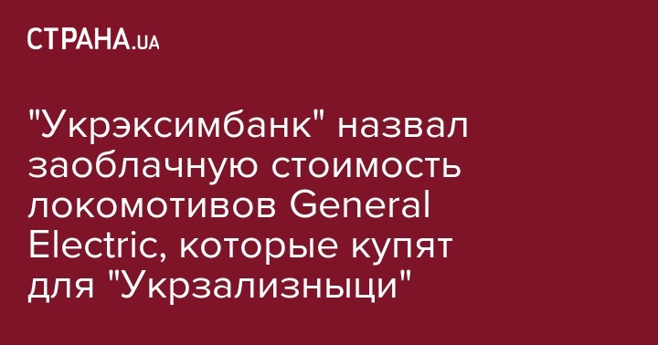 Стала известна стоимость американских локомотивов производства General Electric, которые купят для нужд "Укрзализныци". Отчет о заключении договора между ПАО "Государственный экспортно-импортный банк Украины" и ООО "Джии Украины" о поставке локомотивов на 140,4 млн грн опубликован в системе "Прозоро".