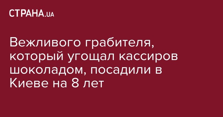 Голосеевский районный суд Киева приговорил к 8 годам лишения свободы 50-летнего уроженца Ивано-Франковской области, который на протяжении 10 лет совершил 22 ограбления банковских учреждений в Киеве и других регионах Украины, оставляя при этом кассирам шоколад.