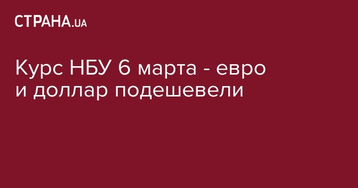Во вторник, 6 марта, Нацбанк установил официальный курс гривны по отношению к иностранным валютам. По сравнению со вчерашним днем евро и доллар подешевели.