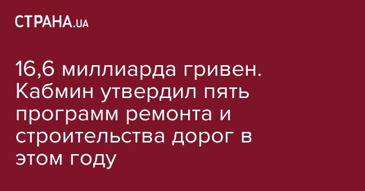 16,6 миллиарда гривен. Кабмин утвердил пять программ ремонта и строительства дорог в этом году