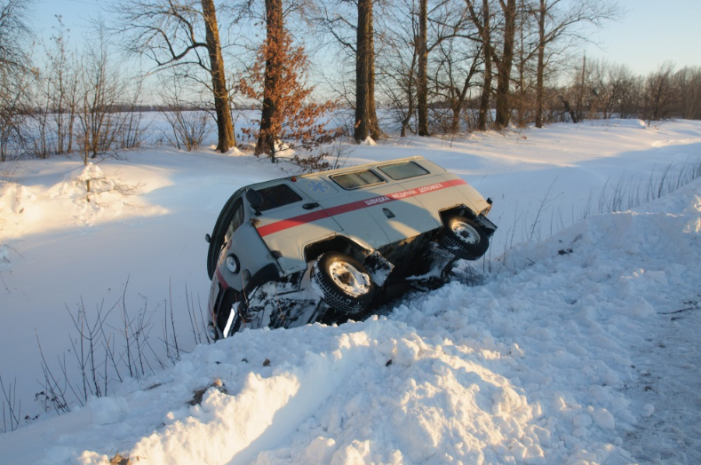 В Сумской области, в районе Конотопа, автомобиль скорой помощи, следовавший по вызову в село Бочечки, попал в кювет и перевернулся.
