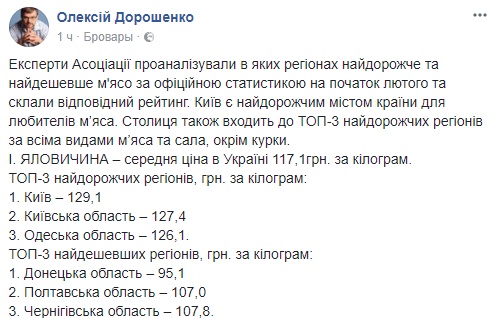 По результатам исследований Киев оказался самым дорогим городом для любителей мяса. К такому выводу пришли эксперты Ассоциации поставщиков торговых сетей, проанализировав, в каких регионах самое дорогое и самое дешевое мясо. В исследовании использованы официальные данные Госстата на начало февраля.