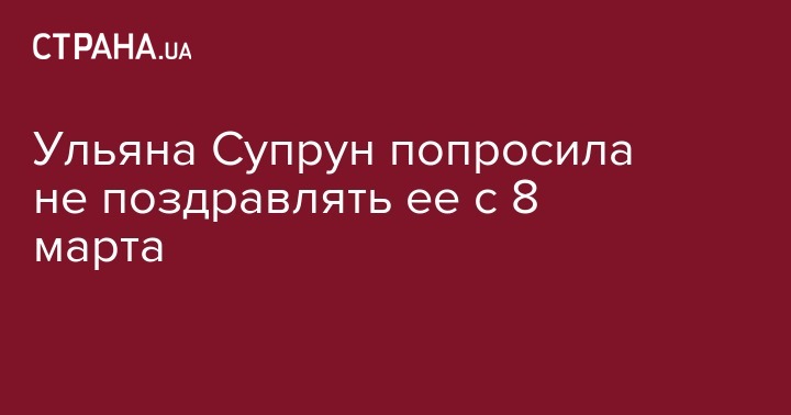 И.о главы Министерства здравоохранения Ульяна Супрун призвала не поздравлять ее с Международным женским днем 8 марта. Она также призвала бороться против гендерной дискриминации.