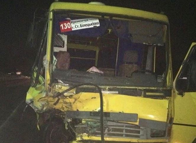 Авария произошла с участием рейсового автобуса "Богдан" под управлением 48-летнего водителя, следовавший по маршруту в направлении города Кременчуг и автомобиля Renault Trafic под управлением 20-летнего жителя Кременчуга. На месте происшествия от полученных травм скончался 21-летний пассажир автомобиля Renault.