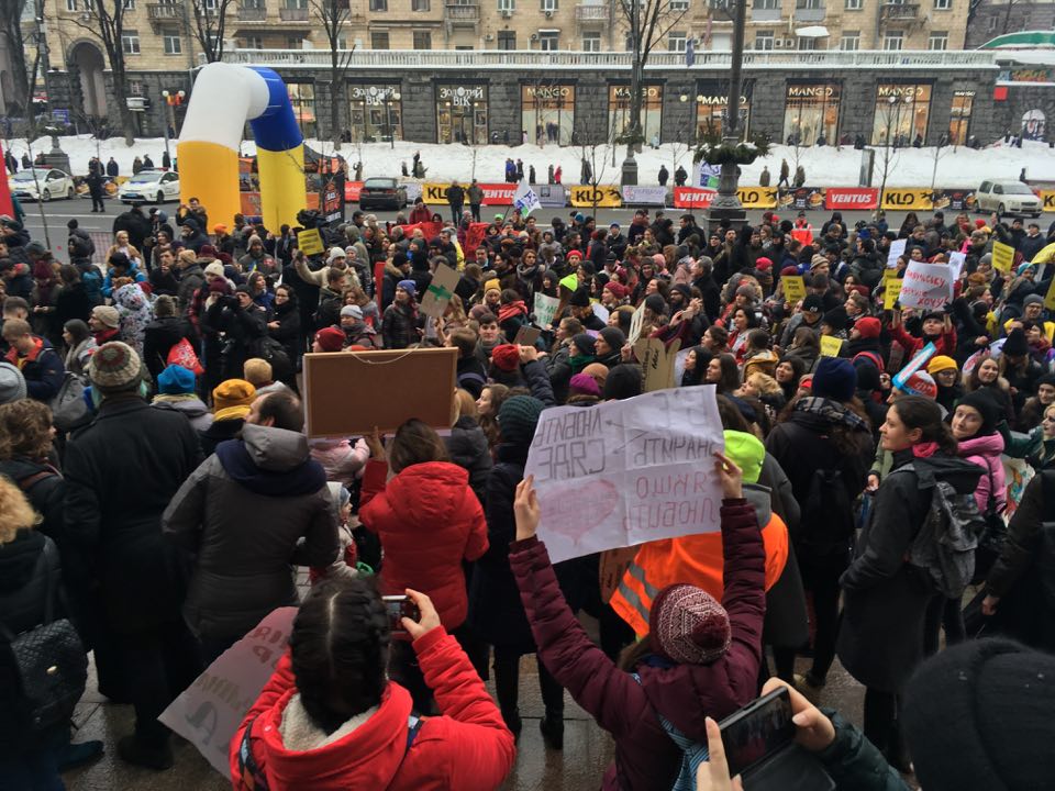 Марш прошел по маршруту: Михайловская площадь - улица Владимирская - улица Льва Толстого - здание КГГА на Крещатике.