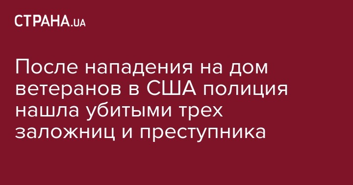 В Калифорнии местная полиция сообщила, что вооруженный мужчина напал на дом ветеранов и удерживал нескольких заложников около восьми часов. Впоследиствии, он отпустил нескольких людей. Трое убитых заложниц - сотрудницы дома ветеранов.