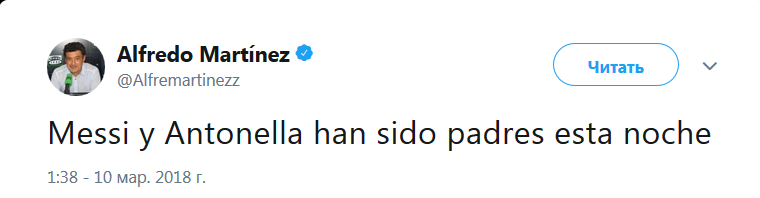 "Сегодня Месси и Антонелла стали родителями", - написал Альфредо Мартинес .
