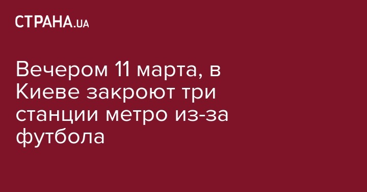 Вечером 11 марта, в Киеве закроют три станции метро из-за футбола
