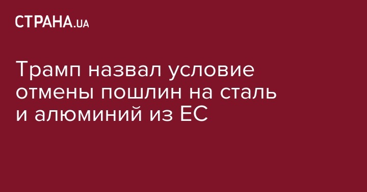 Президент США Дональд Трамп заявил, что откажется от введенных им пошлин на ввоз в страну изделий из стали и алюминия, только если страны ЕС отменят свои пошлины на импорт американских товаров. Об этом он написал на своей странице в Twitter.
