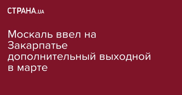"Четверг, 15 марта, когда будет отмечаться годовщина Карпатской Украины, на Закарпатье будет выходным днем. Соответствующее распоряжение подписал председатель облгосадминистрации Геннадий Москаль", - уточнили в Закарпатской ОГА.