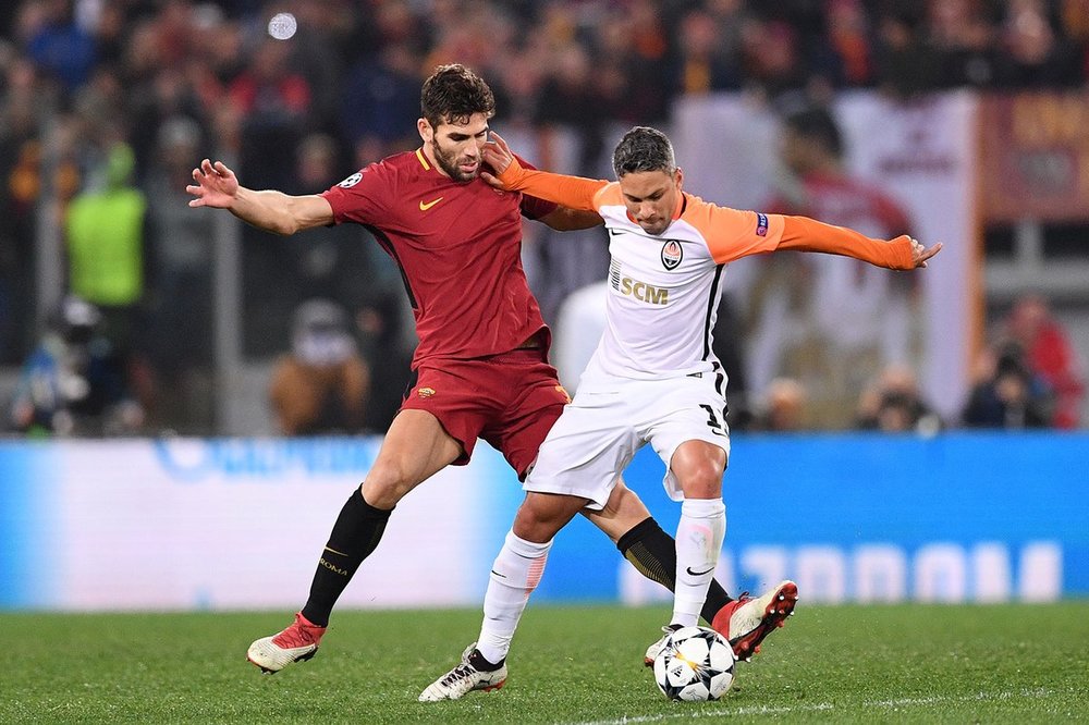 Римляне активно прессенгуют на половине поля Шахтера. Не без успеха.
