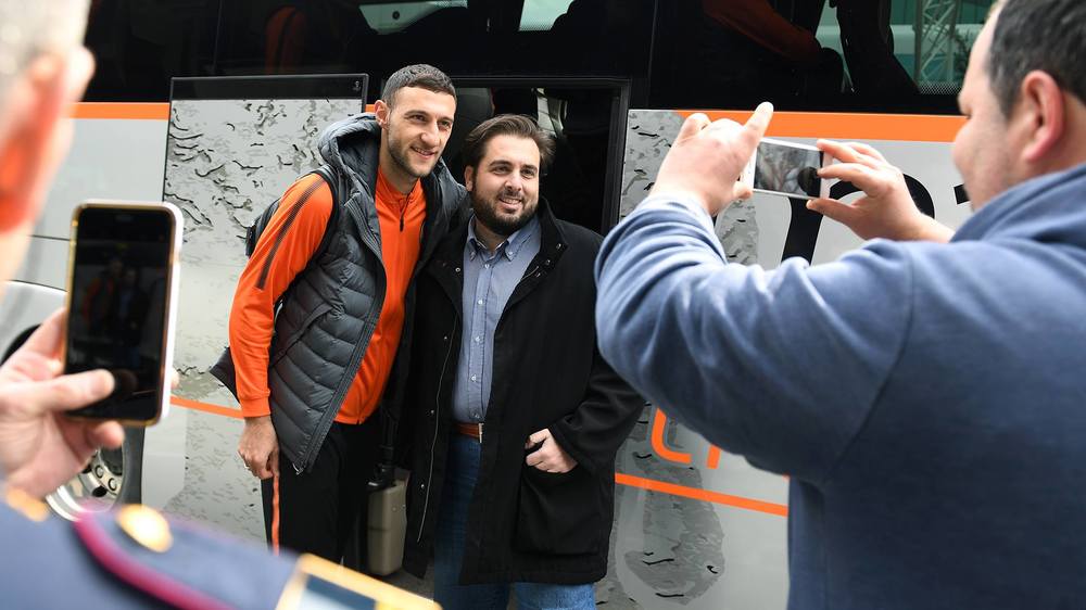 21:32 На улицах Вечного города перед матчем болельщики делали селфи с "горняками".