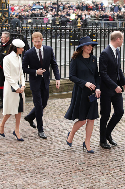 День содружества наций посетила королевская семья полным составом: королева Елизавета II, принцы Чарльз, Уильям и Гарри, герцогиня Корнуольская Камилла и беременная герцогиня Кембриджская Кэтрин.