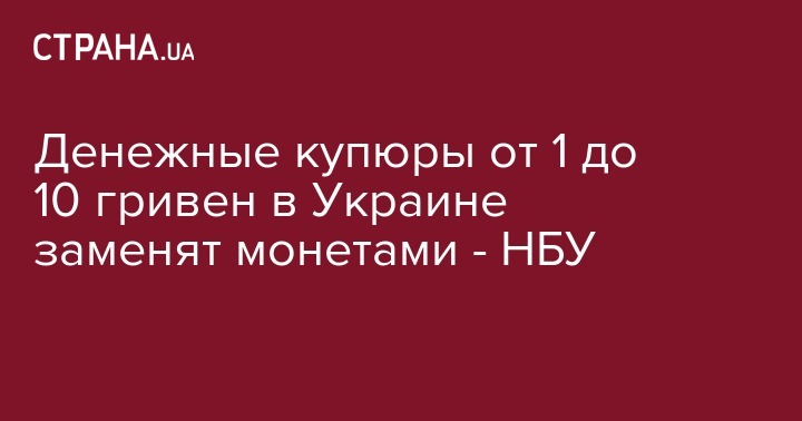 Национальный банк Украины постепенно заменит банкноты номиналами 1, 2, 5 и 10 гривен монетами соответствующих номиналов.