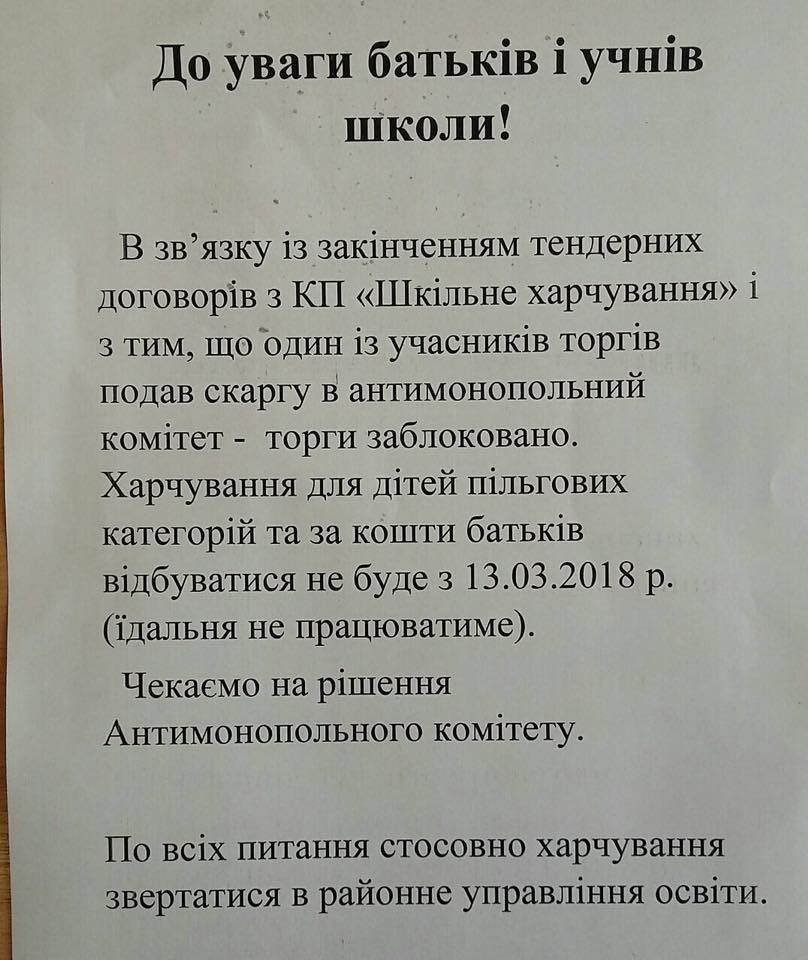 Кстати, родители уже написали в соцсетях, что в школах Оболонского района повесили объявления об отмене питания в школьных столовых. Родители возмущены таким положением вещей.
