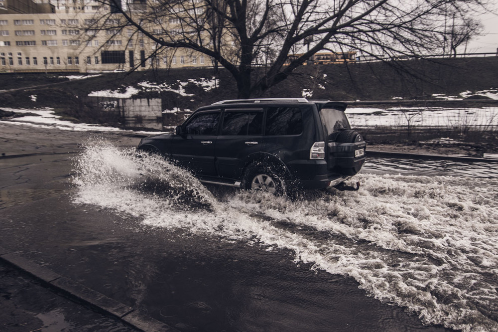 Машины глохнут посреди "водоема", теряются госномера. Некоторые, чтобы вытолкать транспортное средство, вынуждены открывать двери, тем самым набирая полный салон воды.