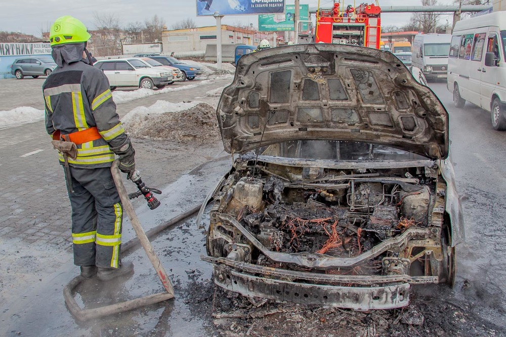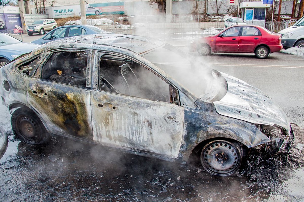 В Днепре среди бела дня на дороге сгорел Ford