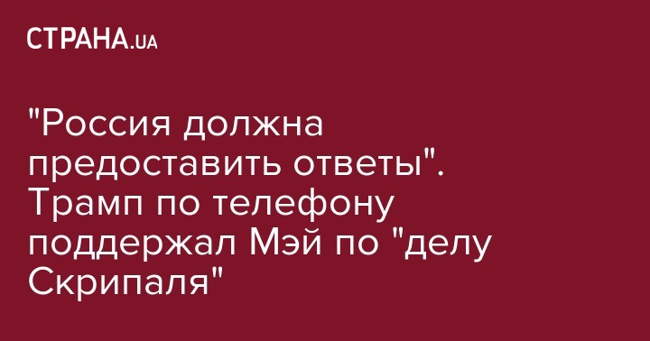 Президент США Дональд Трамп в телефонном разговоре с премьер-министром Великобритании Терезой Мэй согласился, что Россия должна предоставить ответ по инциденту с отравлением бывшего сотрудника ГРУ Сергея Скрипаля и его дочери Юлии.