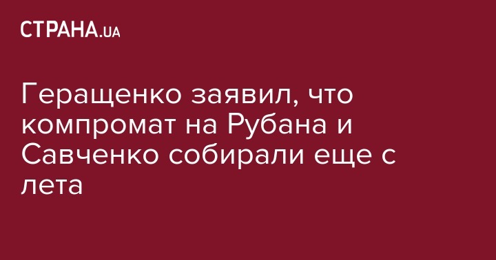 Геращенко заявил, что компромат на Рубана и Савченко собирали еще с лета