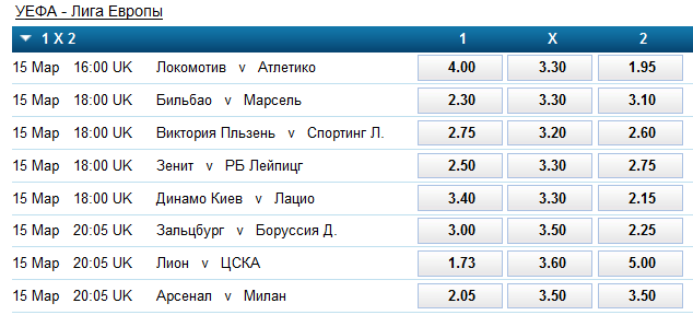 Все ставки на ответные матчи 1/8 Лиги Европы