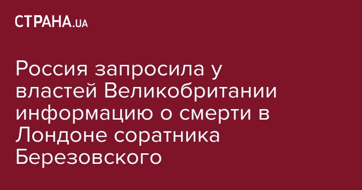 Россия запросила у властей Великобритании информацию о смерти в Лондоне соратника Березовского
