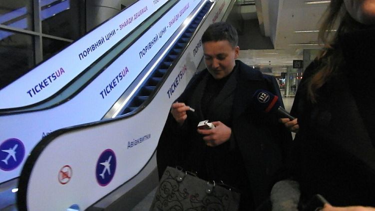 По возвращении, Надежда Савченко первым делом решила закурить.