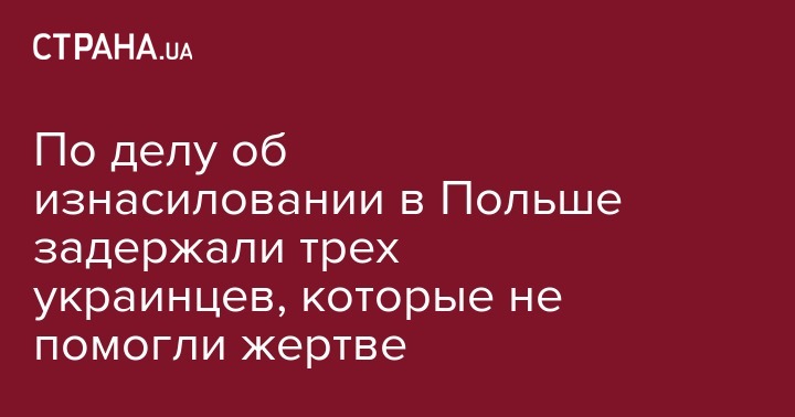 В Польше задержаны трое украинцев по делу об изнасиловании 18-летней девушки. Их обвиняют в том, что не заступились за пострадавшую. Непосредственно в изнасиловании обвиняются поляки.