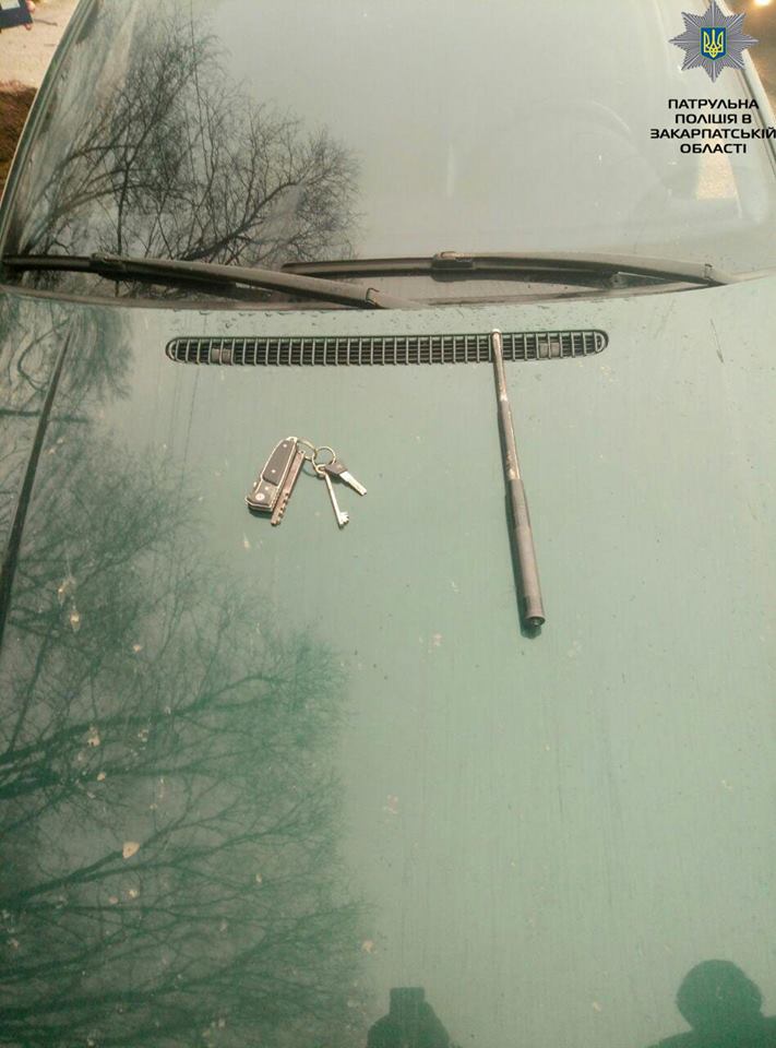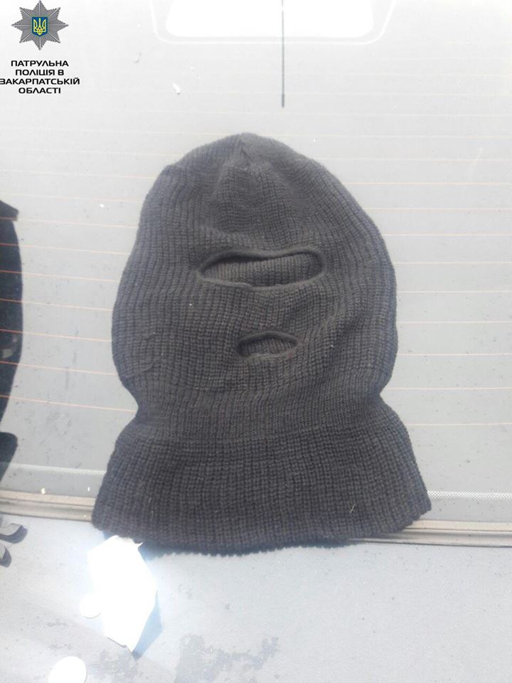 Впоследствии, блюстители порядка, остановили Volkswagen. Согласно статьи 34 ЗУ "Про Национальную полицию", провели поверхностную проверку, во время которой у пассажиров транспортного средства патрульные обнаружили три ножа, балаклаву и газовый баллончик