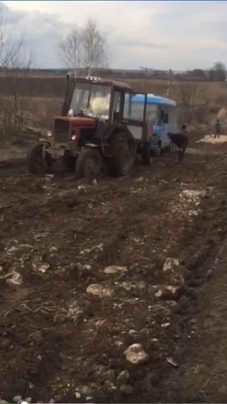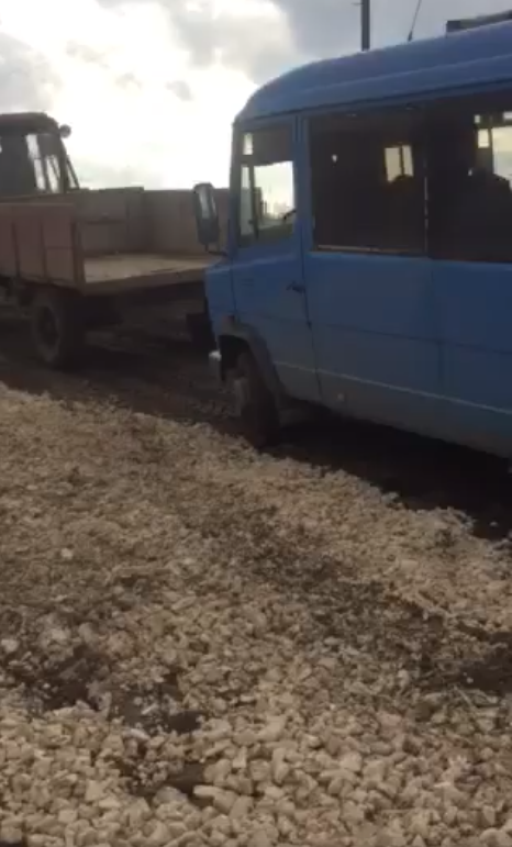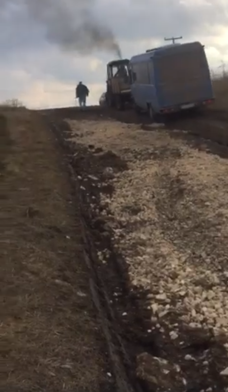 В Ивано-Франковской области из-за ужасного состояния дороги в село Луковец-Вишневский пришлось тащить маршрутку с помощью трактора.
