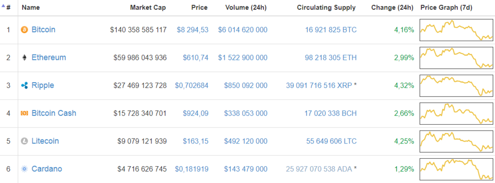 Об этом свидетельствуют данные площадки coinmarketcap.