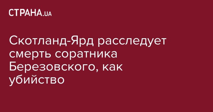 Правоохранительные органы Великобритании начали расследование дела об убийстве соратника Бориса Березовского Николая Глушкова, говорится в заявлении Скотланд-Ярда.