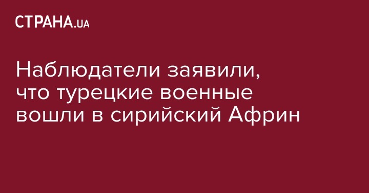 Наблюдатели заявили, что турецкие военные вошли в сирийский Африн
