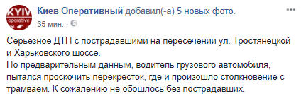 В воскресенье в Киеве произошло серьезное ДТП с пострадавшими на пересечении ул. Тростянецкой и Харьковского шоссе.