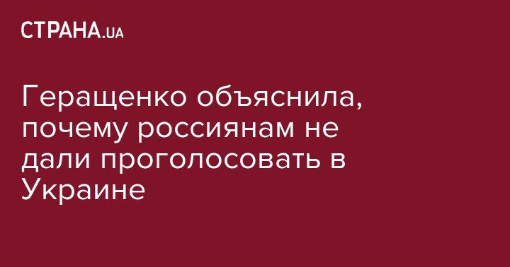 Первый заместитель председателя Верховной Рады Ирина Геращенко пояснила, почему россиянам не дали проголосовать в Украине на избирательных участках в российском посольстве в Киеве и консульствах в Одессе, Харькове и Львове.