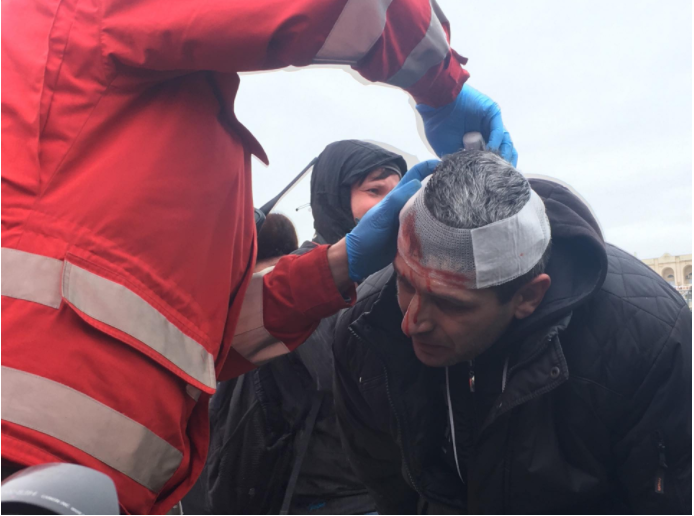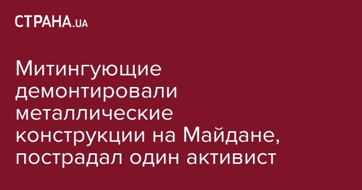 При этом при сносе конструкций на Майдане активист попал под удар железной трубы.