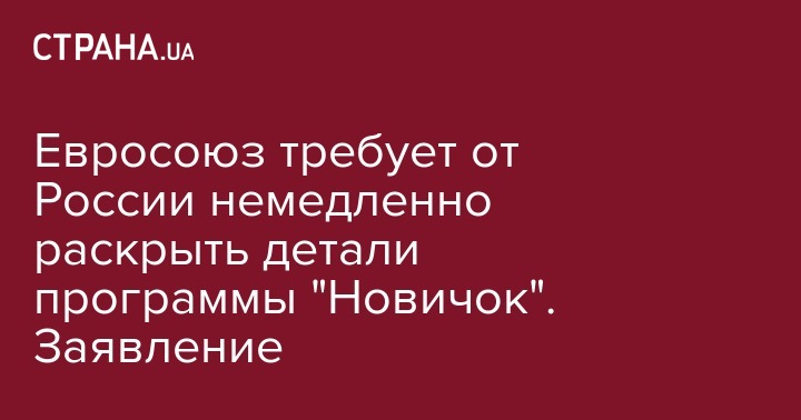 Евросоюз выдвинул ряд требований к России. В частности, призвал РФ срочно ответить на вопросы, которые поднимает Великобритания и международное сообщество, и обеспечить немедленное и полное раскрытие своей программы "Новичок" перед Организацией по запрету химического оружия.