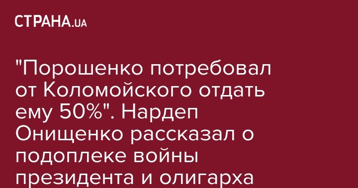 "Я тогда с Коломойским поругался. Он мне сказал, что если раньше Янукович забирал 50 процентов от его бизнеса, то с таким же предложением к нему обратился Порошенко. И Коломойский должен был отдавать ему 50% от всей прибыли. Но у Коломойского была другая идея. Он думал, что если он, грубо говоря, защитил Днепропетровскую область, на тот период, когда это была проблемная область, не допустил туда оккупантов, то он заслуживает хотя бы того, чтобы с него не вымогали денег. И он отказал Порошенко. И вот это давление было постоянно", - объяснил Онищенко.
